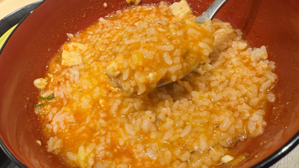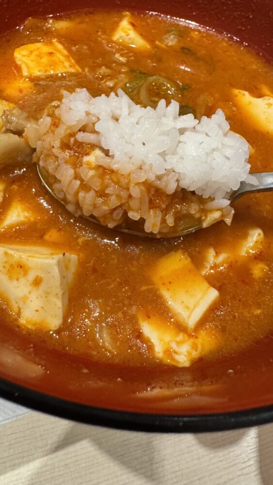 ▲ライスを大盛でお替り。鶏豆腐キムチチゲがライス泥棒すぎてあっという間です。