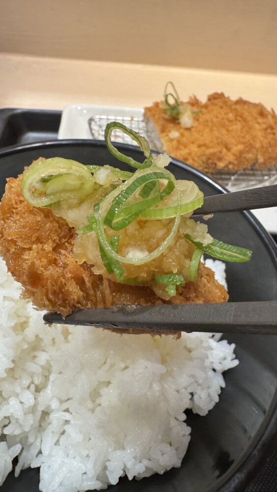 ▲ロースかつはミニ鬼おろしポン酢で食べます。さっぱりテイストで食べるロースかつが美味。