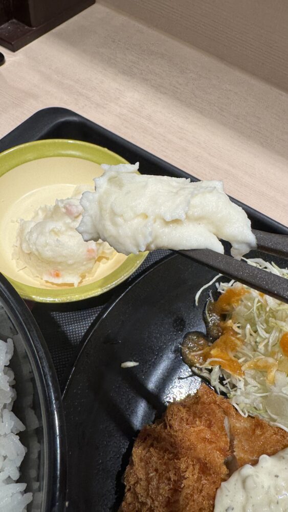 今回はタルタルチキンかつ定食(ライス大盛)+トッピングポテサラ+ライス大盛を注文しました!