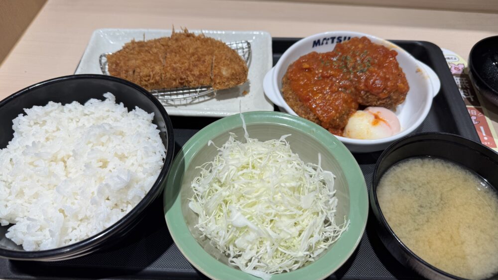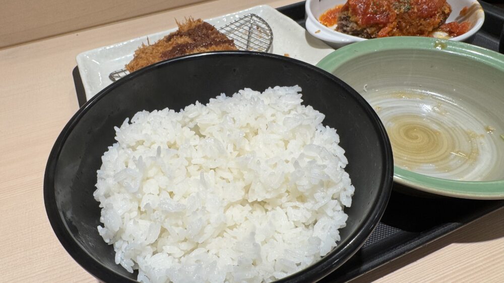 「うまトマメンチかつ定食(ライス大盛)+単品ロースかつ+ライス大盛+ライス並盛」を実食!