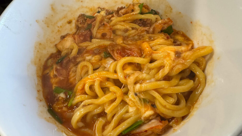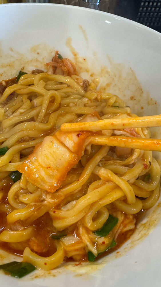 ▲モチモチした麺にチーズとコチュジャンやキムチ系の辛いタレが合わさってめちゃ旨!
