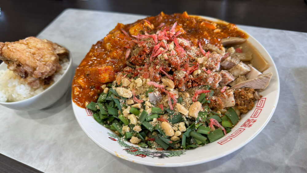 「山椒汁なし+麺大盛+マー坊追加+デカからご飯」を実食!