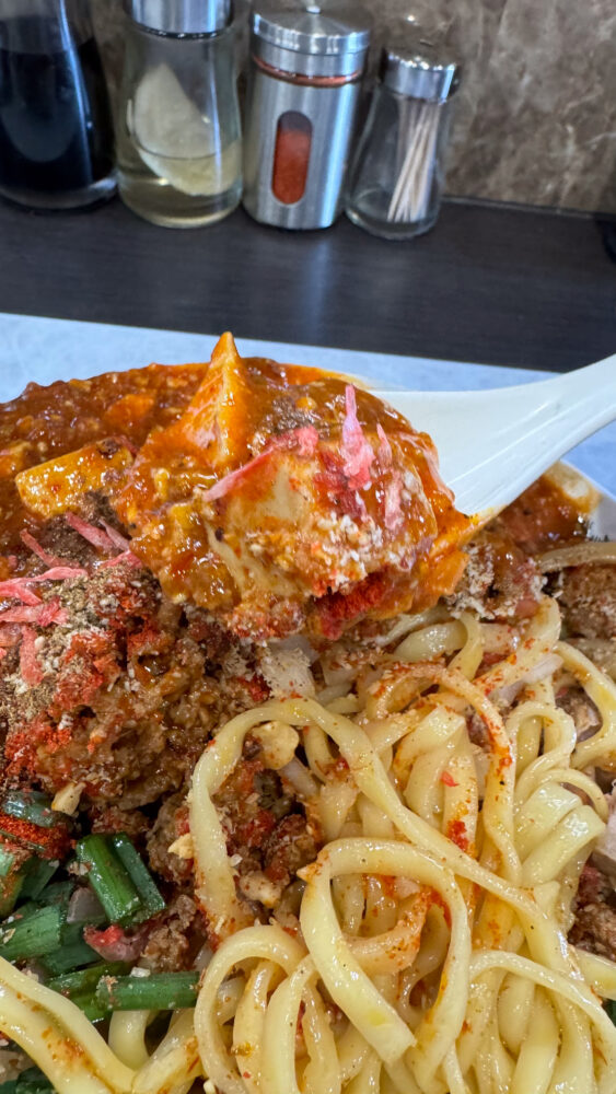▲マー坊を麺にしっかり絡めて味変。粘度高めな麻婆豆腐が絡んで美味。