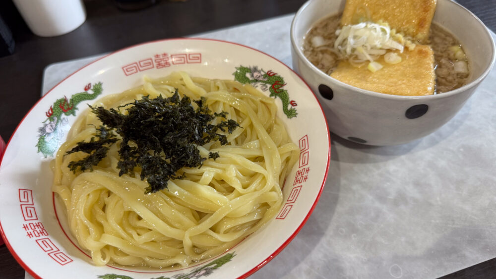 今回は昆布水の背脂烏賊煮干つけ麺+大盛りを注文しました!