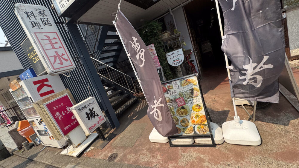 ▲店舗は2階の奥側右手にあります。階段付近の1階の写真。