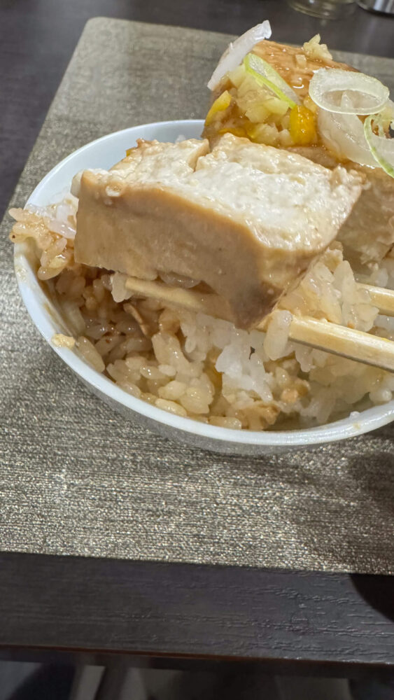 ▲とうめしは味が染みた豆腐がライスにオンされたやつです。この日は限定20食でした。