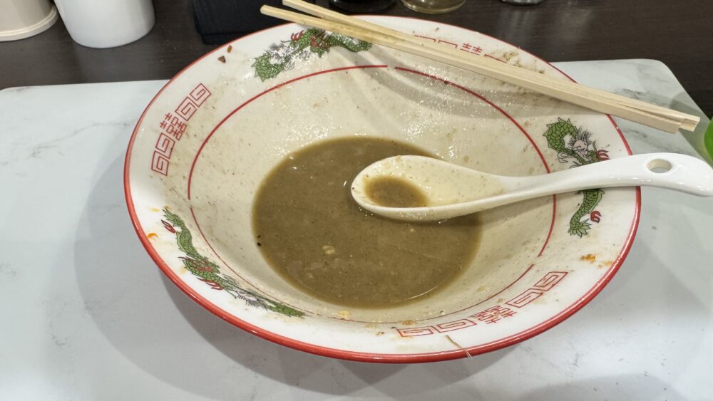 ▲スープはどろっどろで粘土高め。煮干の旨味が強くてめちゃ旨。