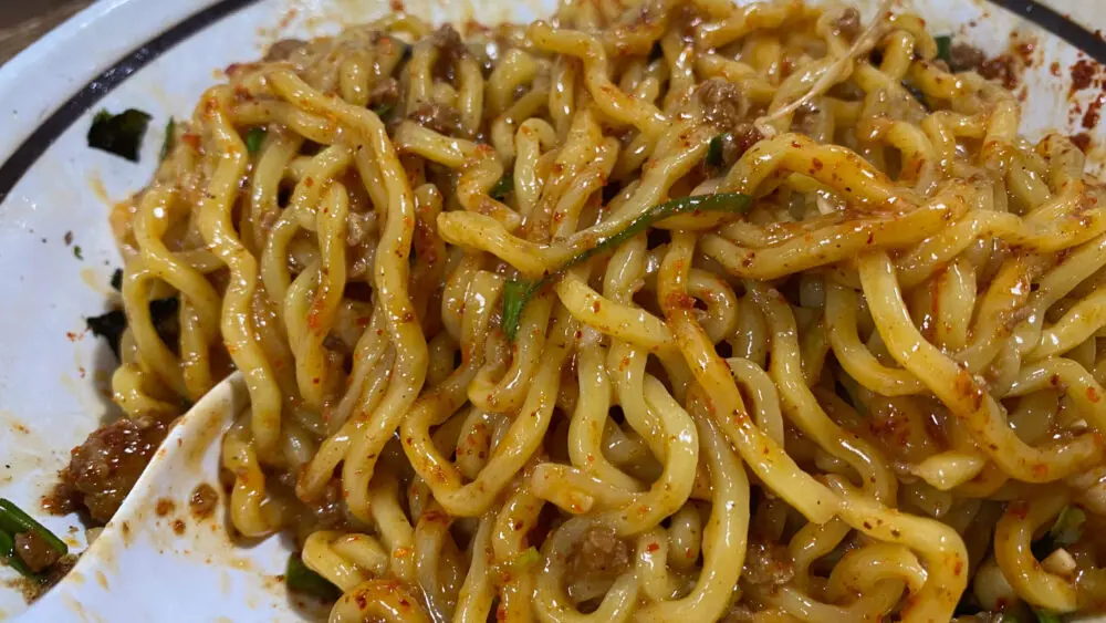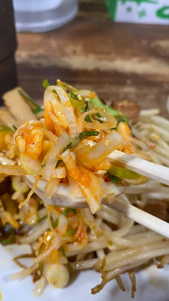 ▲プリプリな麺に唐辛子の辛さとチーズのコクがアップして、よりジャンク感が増し増しで美味しい!