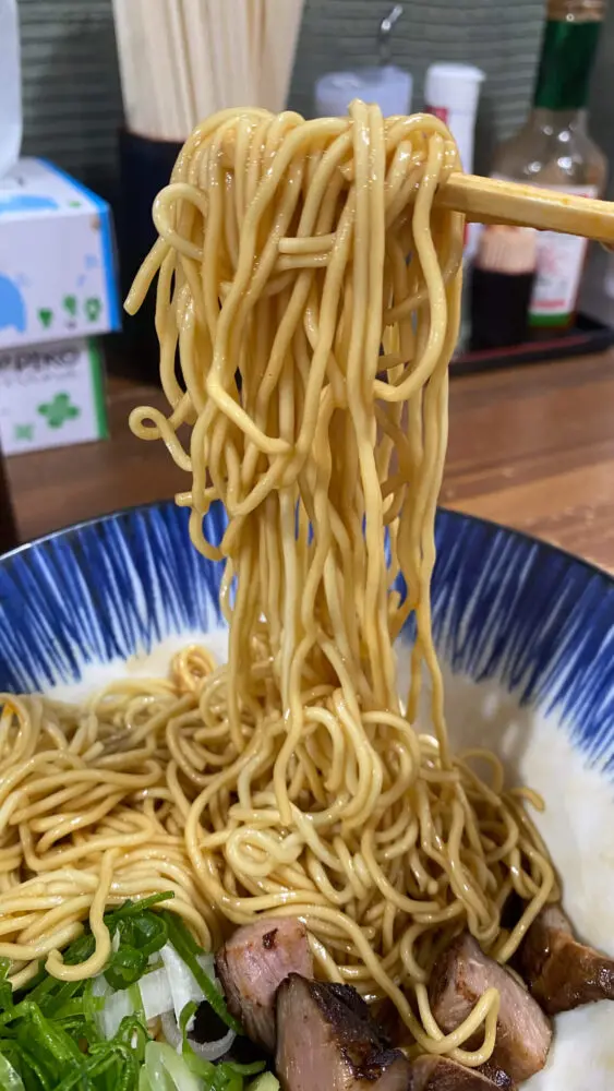 ▲まぜそばと違ってパツパツ系の麺が煮干にしっかり絡んでめちゃ旨。