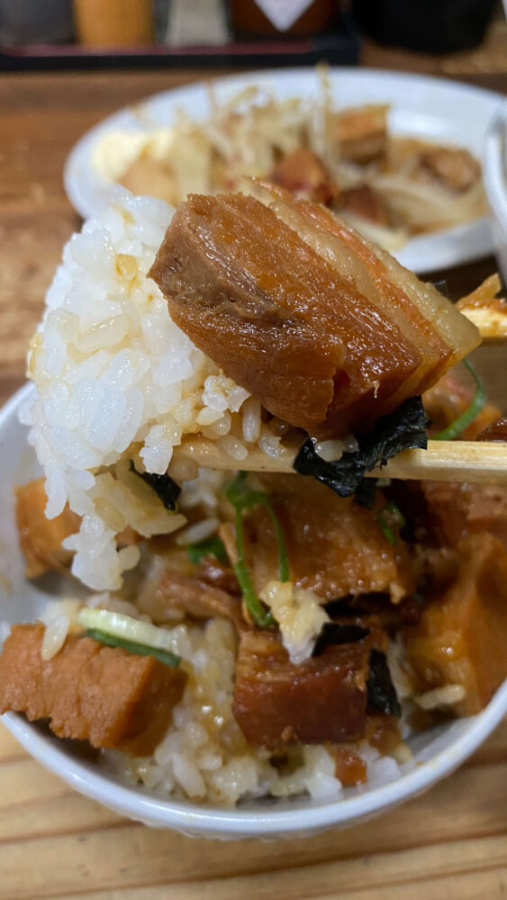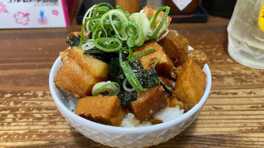 ▲トロ豚飯。ゴロゴロと大きめの角煮がオン・ザ・ライス。「男飯」という感じで最高です。