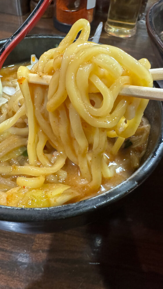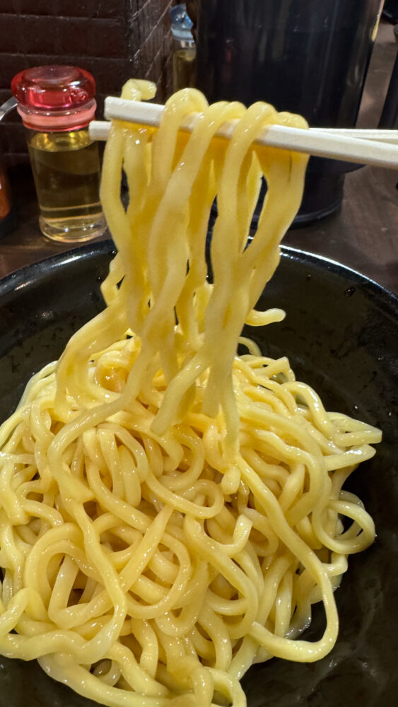 ▲麺はツルモチ食感。太麺で食べ応えもバッチリですね。