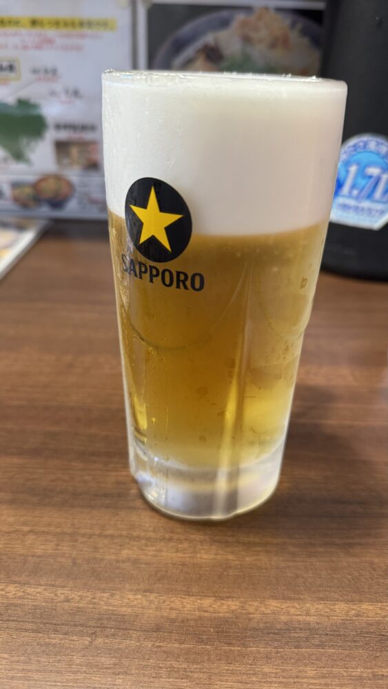 ▲生ビールからの提供。サッポロですね。仕事終わりのビールの旨さは異常です。