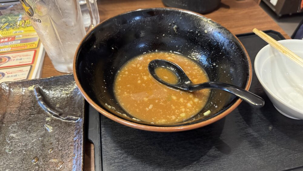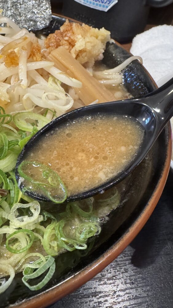 ▲スープは微乳化。ドロっとしてますが意外とマイルド。