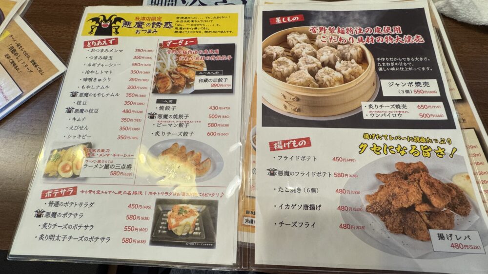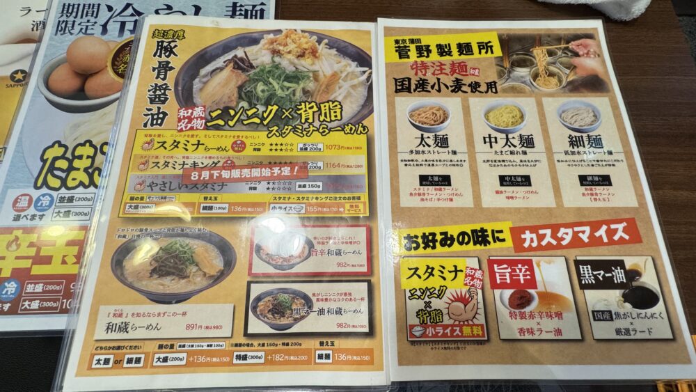 あと、和蔵辛つけめんなどのつけ麺メニューも食べてみたいですね。