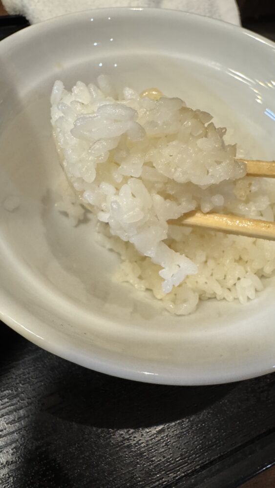▲麺やスープ、具材で残りの小ライスも食べ進めます。白米にも合いますね。