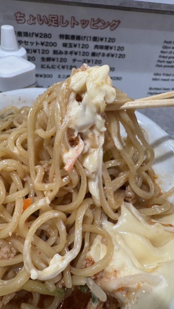 ▲添えられたマヨネーズで味変。マヨネーズのマイルドさが加わってジャンクな旨さ。