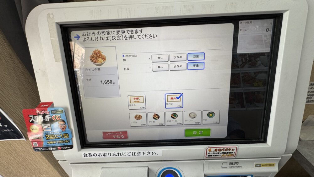 「冷やし中華(麺並盛・野菜普通)+麺大盛」を実食!