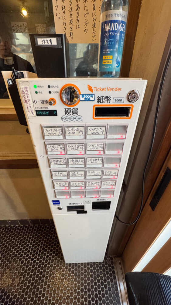 ▲食券機で注文します。食券機の側面に無料トッピングの注文用紙があります。