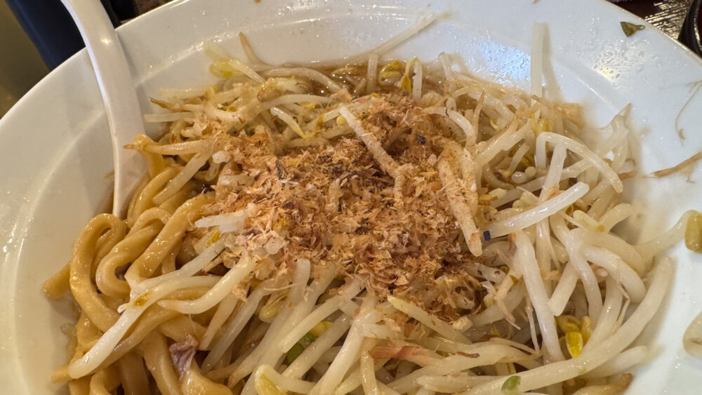 2023/8/26(土)に閉店した近所で貴重な二郎系のお店が「めん屋 五坊」。 前回は油めん(ヤサイちょい増アブラ増増かつお粉増増生たまごあり)+大盛+ソーキ(豚)1ケを楽しみました。 たまたま有休だった平日のランチに別 …