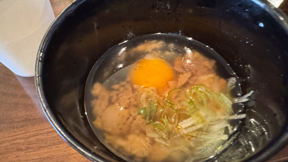 ▲有料トッピングのつけ油。生玉子に背脂やネギが入ったものですね。