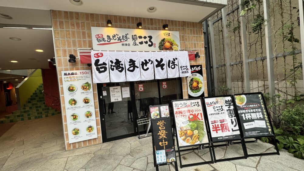 ▲秋津クロスコートにあります。サイゼリヤの目の前。看板はモノトーンで台湾まぜそばの写真も目立ちます。