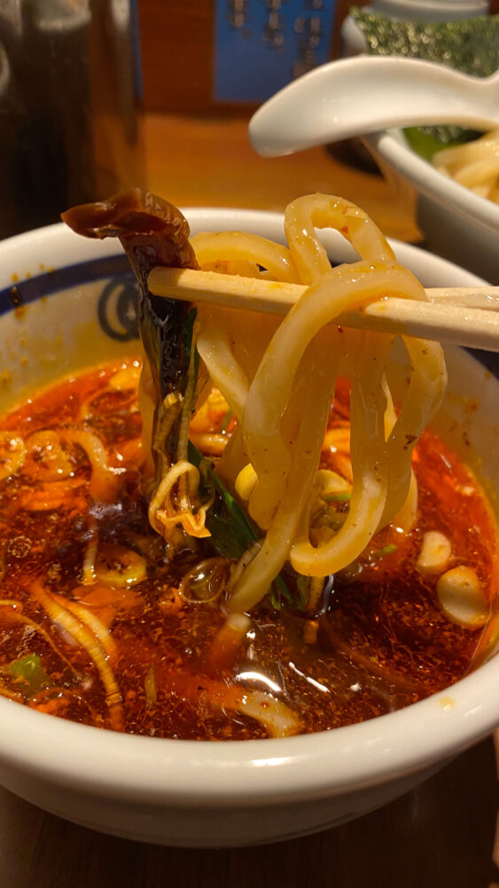 つけ汁の色のわりに意外と辛くないので、ちょっとした辛党の方にはちょうど良いレベルですね。