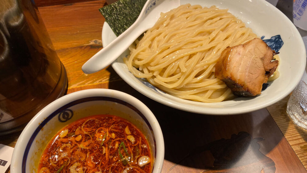 いつもは濃厚二天つけ麺とか頼みがちなので、辛味つけ麺はもしかしてはじめてかも。