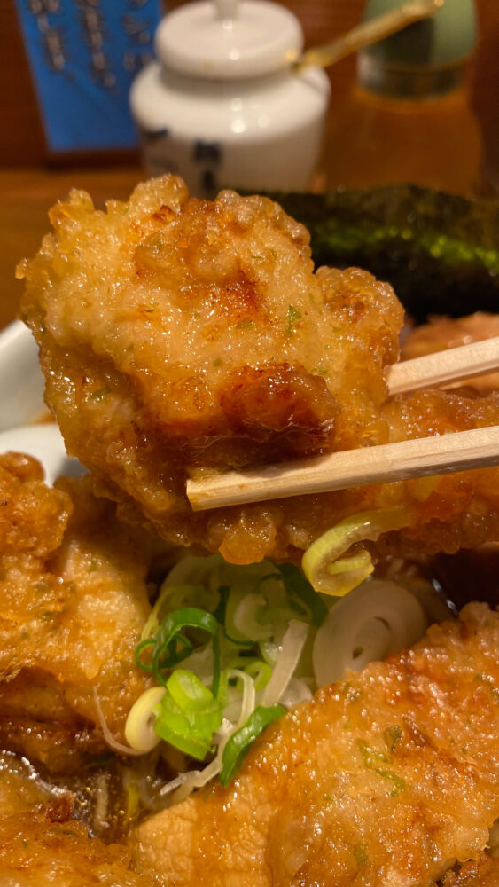 ▲プリっとジューシーな鶏天。こちらもスープに浸して食べても美味しい。