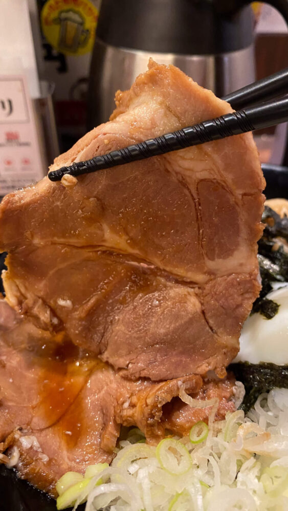 ▲大判なチャーシューは、かなりのしょっぱ旨。