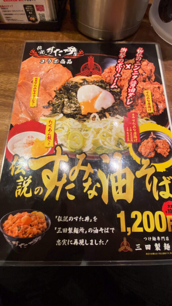 今回は2023/7/4~8/31の期間限定で三田製麺所×伝説のすた丼屋のコラボ商品が販売されるとのことで、仕事帰りに新宿西口店へ訪問してみました!