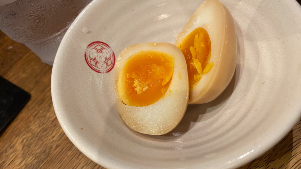▲せっかくなので公式アプリをDLした特典として味玉を無料でいただきました!味染み良くて美味しいです。