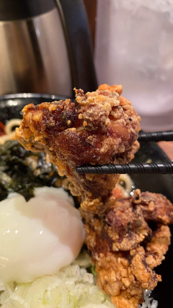 ▲唐揚げはニンニクがガッツリ効いてジューシーで旨し。