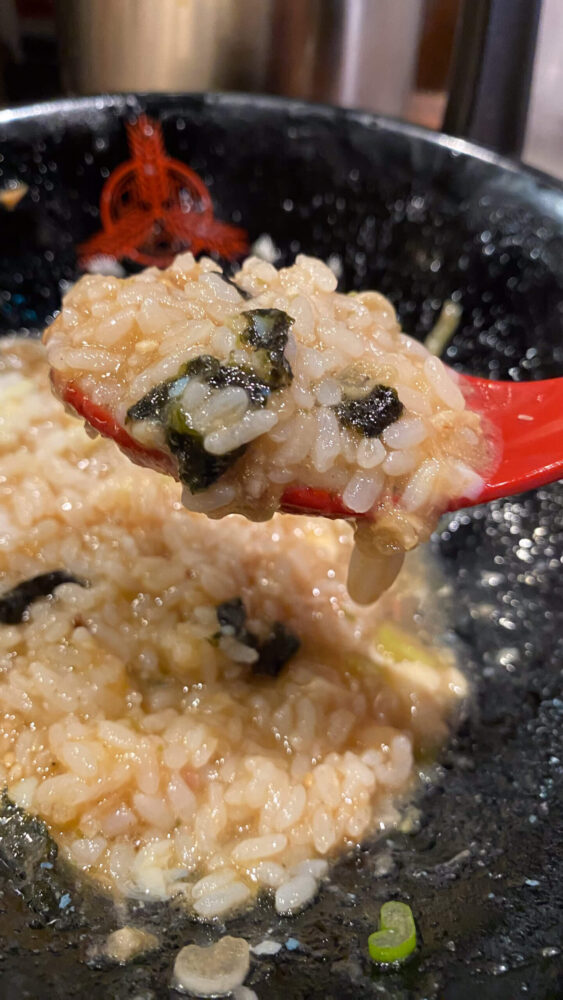 ▲あとはご飯とタレをしっかり混ぜて雑炊風にして食べると最高!これでフィニッシュです。