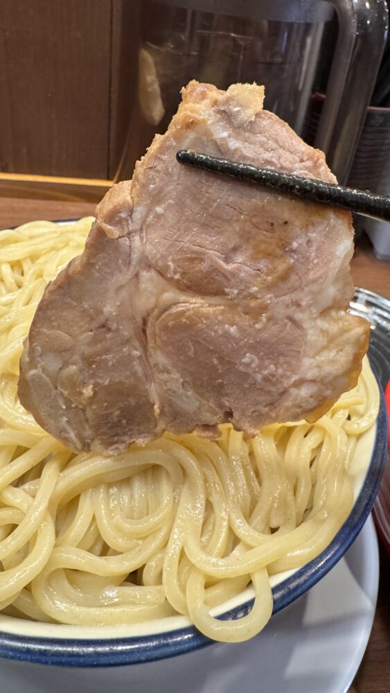 ▲つけ汁の中には角切りのチャーシューも入っています。豚の旨味が良いアクセント。