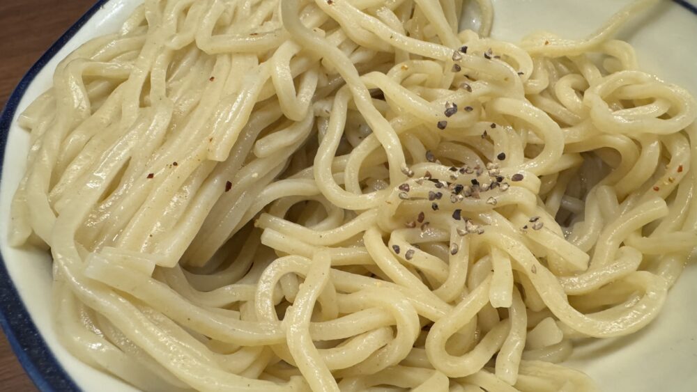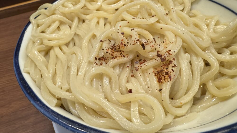 ▲さらに、黒胡椒で味変。ガリっと噛むとピリッと刺激があってつけ汁と別ベクトルの辛さが良い気分転換。