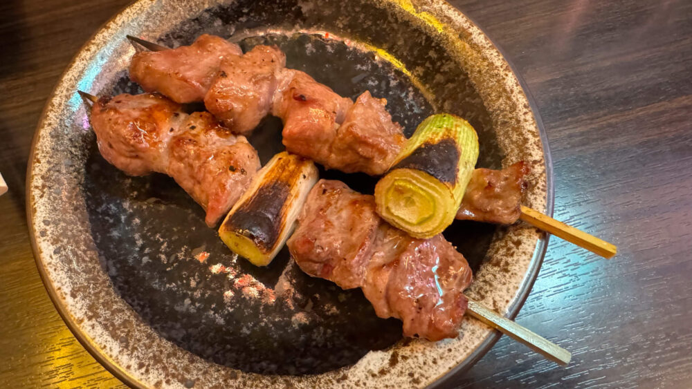 ▲追加注文したやきとんが到着。はらみ+かしらを頼みました。