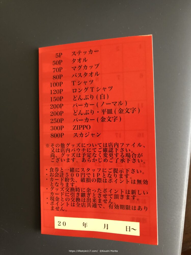 面白いのは、貯めたスタンプ数に応じて中本オリジナルグッズと引き換えできる点ですね。