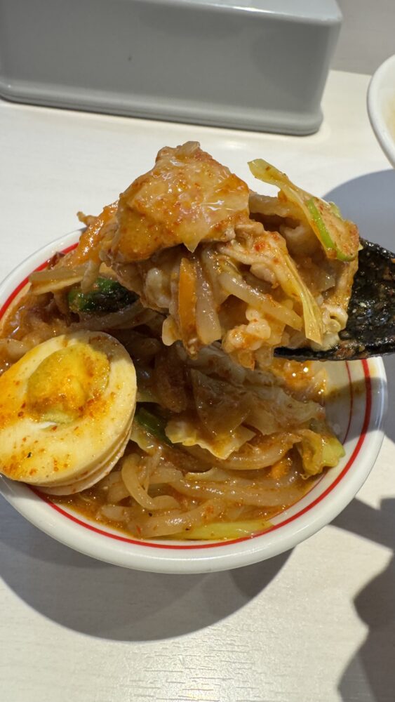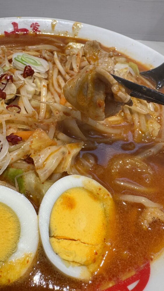 辛さ10ですが、豚骨の旨味で辛さは緩和されているので、五目蒙古タンメンの次の段階で食べても良いかもしれません。