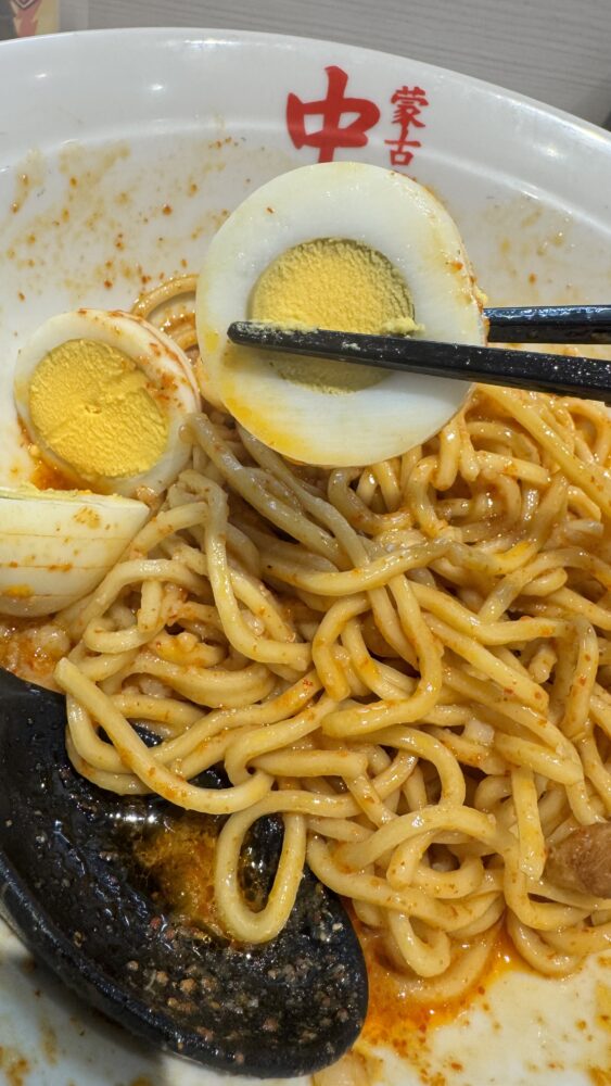 ▲追加トッピングしたゆで玉子。スライスされていて、合間に食べると良きオアシス。