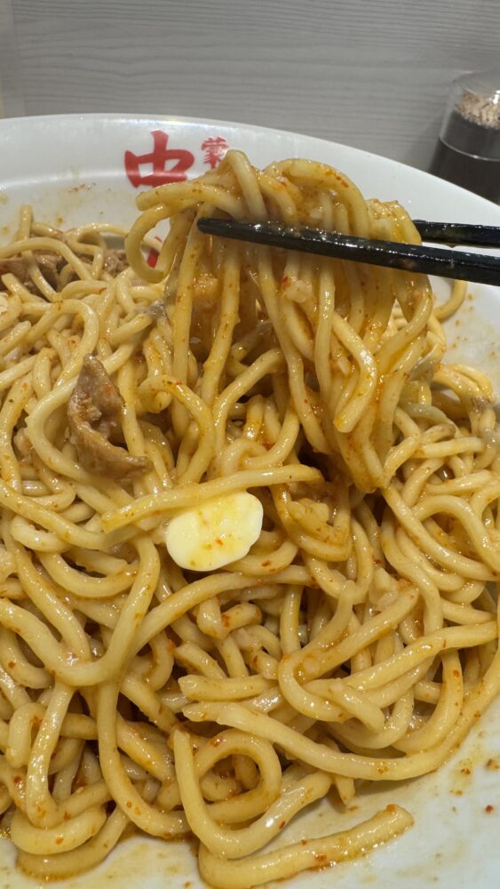 中本の北極まぜそばは、北極のタレと背脂・バターが絡んだパツっとした麺が辛旨でした!