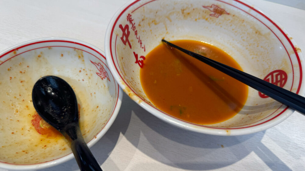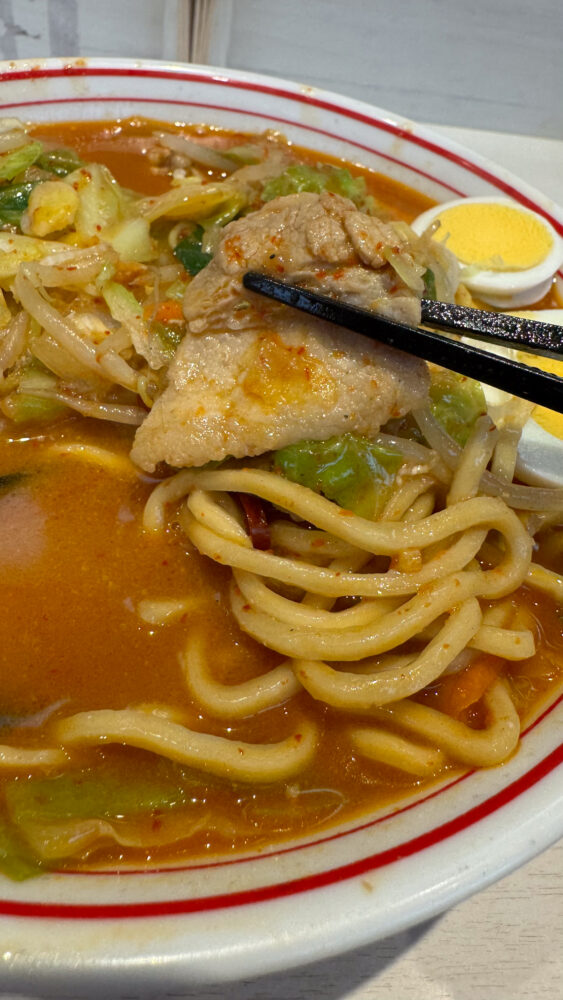 辛さ8ですが、豚骨の旨味が強めで、辛さは控えめに感じるので非常に食べやすいですね。