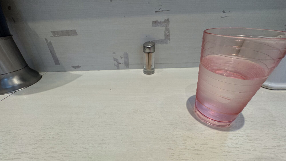 ▲以前はあった卓上調味料はなし。店員さんへお願いすると紅生姜、お酢、一味唐辛子等を持ってきてくれるみたいです。