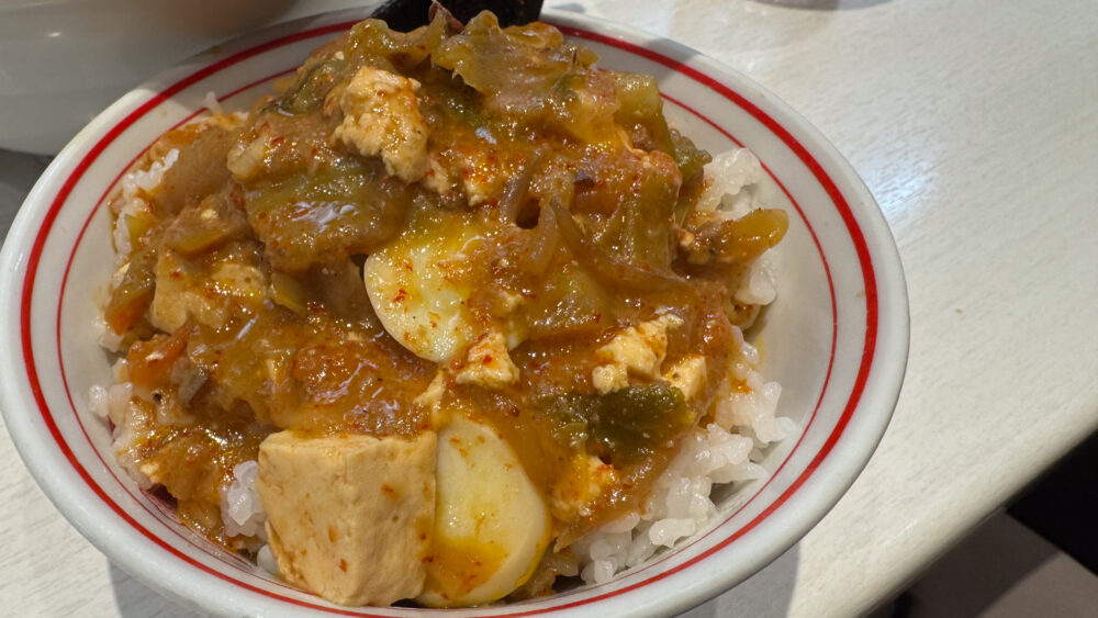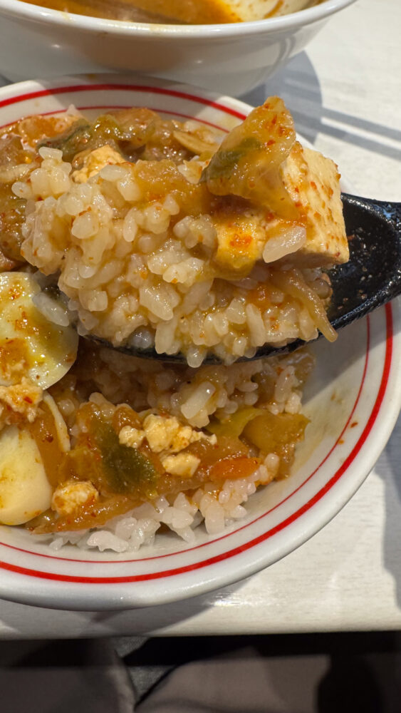 ▲麻婆豆腐は辛旨。どろりと粘度が高くて辛め。スープに溶かして楽しみます。