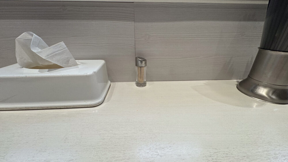 ▲以前はあった卓上調味料はなし。店員さんへお願いすると紅生姜、お酢、一味唐辛子等を持ってきてくれるみたいです。