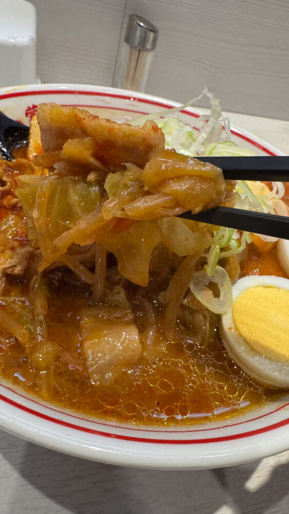 辛さ7なので、通常の蒙古タンメンよりも辛さ+2ですね。