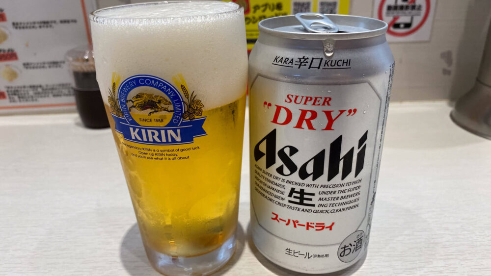 ▲黄金色のスーパードライは辛口で安定の美味しさ。何気に中本でビールを頼むは初かもです。