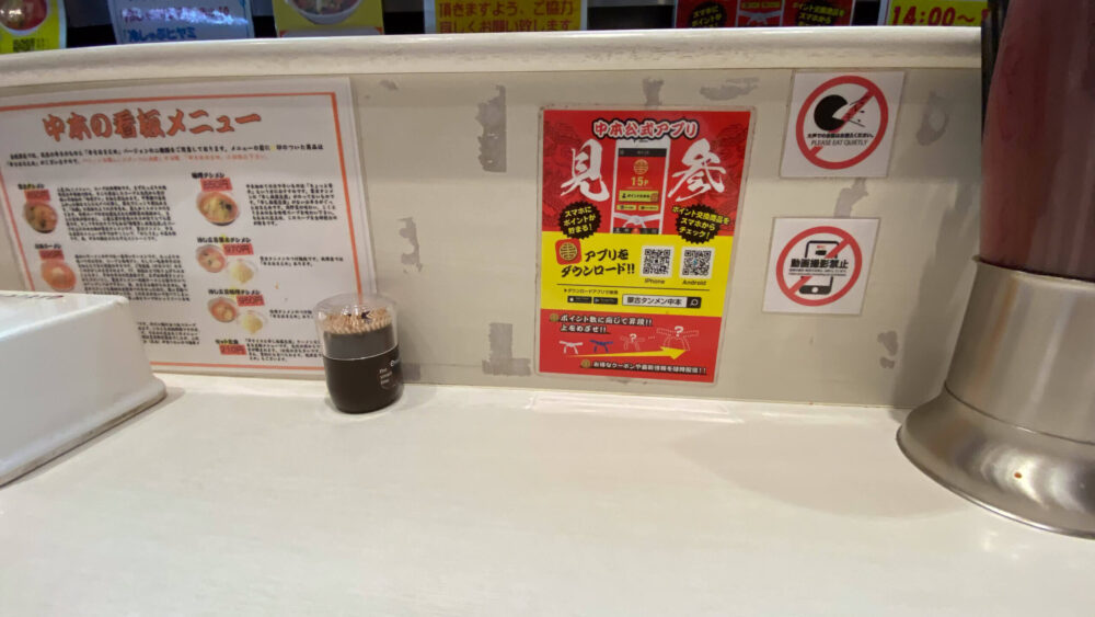 このタイミングで蒙古タンメン中本のアプリを見せ、ポイントをためてもらう+使いたいクーポンを申告すると良いです。