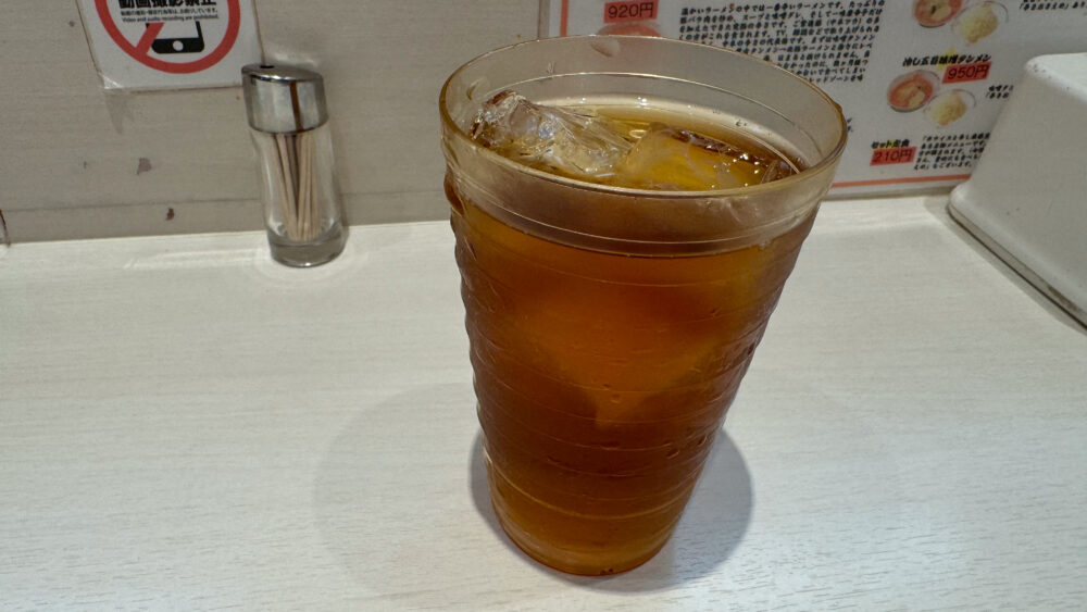 ▲最初にウーロン茶から提供。しっかり冷えていて美味しい。中本はコップがデカめなのでお得感ありますね。