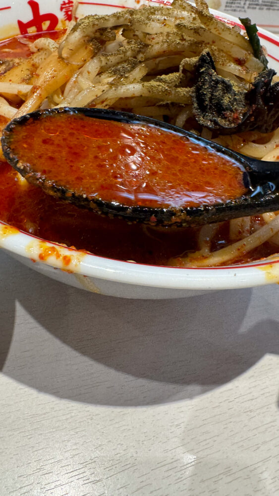 ▲スープは北極の2倍の辛さみたいです。山椒部分も混ざ具材でシビカラに調節できます。