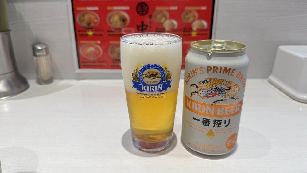 ▲缶ビールからの提供。キリン一番搾りですね。安定の美味しさ。